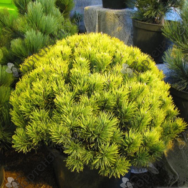 Сосна горная 'Карстенс Винтерголд' - красивая карликовая сосна, к 10-ти годам высота 40 см, диаметр 50 см, в молодом возрасте немного рыхлая, затем более компактная. Высота взрослого растения: 0,7 м. Диаметр кроны взрослого растения  до 1 м. Хвоя весной и летом зелёная, зимой яркая, золотисто-жёлтая, очень эффектна на фоне снега. Место солнечное. Морозостойкость -40С.
