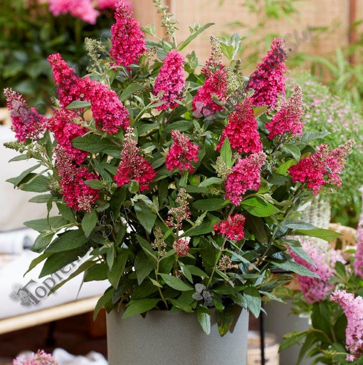 Карликовый сорт голландской селекции. Густоразветвленный, прямостоячий кустарник высотой и шириной до 80 см. Листья серебристо-зеленые. Цветки темно-красные, многочисленные, в прямостоячих метелках. Цветет обильно и продолжительно с июня по сентябрь. Новые метелки постоянно образуются путем удаления увядших цветков. Для лучшего роста и обильного цветения буддлею надо высаживать на солнечное место, защищенное от холодных ветров и сквозняка. Предпочитает плодородные, достаточно дренированные, известковые почвы. Используется для создания небольших групп в сочетании с низкими кустарниками. Используют в одиночных и групповых посадках, для декорирования построек.