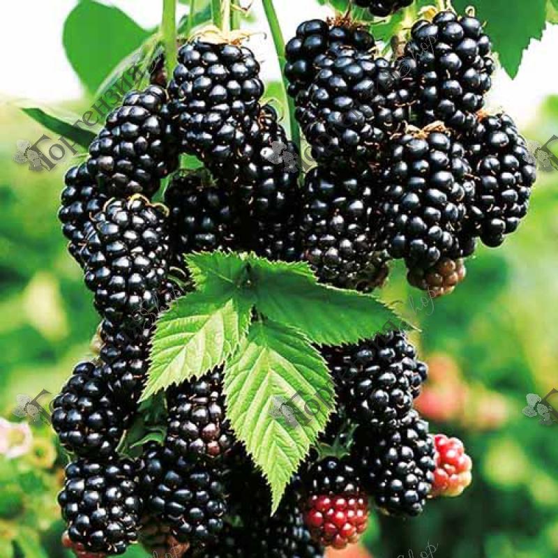 Плоды крупные, массой до 3 г. По мере созревания меняют окрас с зеленого до малинового и черного цвета. Ягоды сочные, плотные, на вкус сладкие без привычной для культуры горчинки.Цветет ежевика на однолетних побегах. Вкусные сочные ягодки созревают ближе к концу лета. Один куст за сезон дает до 1,5 кг отборных душистых ягод.