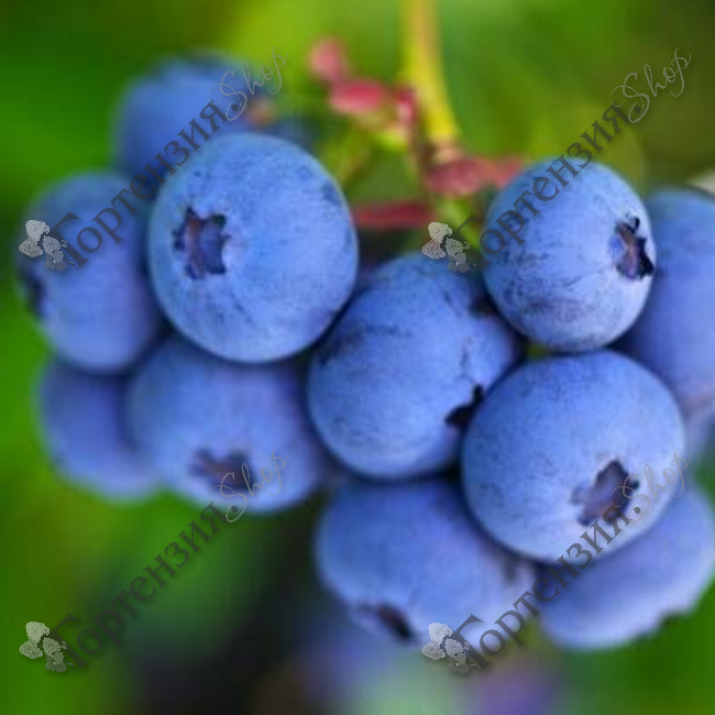 Куст активный, энергичный, средней высоты, 1,6-2 метра, с прямыми, компактно собранными ветвями. Побеги гладкие, зеленого цвета, слегка изогнуты, листья гладкие, овальные, с блеском. Цветы белые, появляются в конце мая. Ягоды созревают через 1,5-2 месяца после цветения. Кустик сорта Блюкроп очень красив, такое растение будет отлично смотреться даже в чисто декоративных миксбордерах. Осенью его листья окрашиваются в потрясающе яркий красный цвет.   Ягоды впечатляют. Очень крупные, каждая ягода весит почти 2 грамма, а в диаметре достигает 1,9-2 см. Ягоды округлые, с типичным для голубики кольцом снизу, темно-синего цвета, с густым сизым налетом. Мякоть светло-зеленая, сочная и упругая. Кожица плотная и эластичная, с опушением, средняя по толщине. Ягоды собраны в длинные кисти. Они не склонны к растрескиванию, хорошо лежат и переносят перевозку. Вкус десертный, сладкий, с легкой кислинкой и нежным ароматом. Сорт относится к среднеспелым.  Выдерживает морозы до  35 градусов.