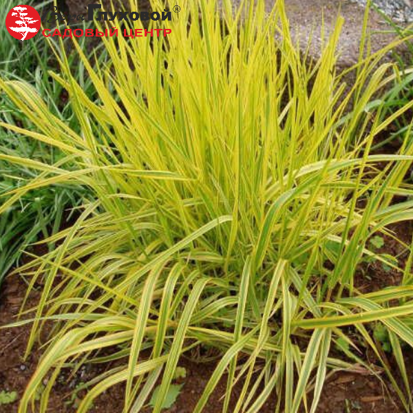 Растение, образующее достаточно плотную кочку, постепенно расползающуюся. Совершенно жёлтая листва отрастает очень рано, потом постепенно на листьях проявляются зеленые полосы. Летом листья вырастают до 30–40 см, осенью их длина   доходит до 70 см, они начинают эффектно поникать. Зеленые, потом коричневатые цветки-колоски на крепких стеблях имеют правильную цилиндрическую форму. Цветет в конце мая–июне. Любит влажные плодородные почвы. Используется для посадки в массив, создания яркого желтого акцента. Размножается делением корневища весной и осенью.