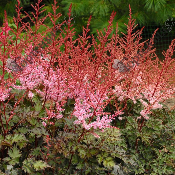 Астильба Арендса 'Delft Lace' "Дельфт Лейс" ("Дельфтское Кружево") - оригинальный и очень красивый сорт, высотой до 80 см. Действительно полный эффект воздушного кружева. Соцветия ажурные, слегка поникающие. Бутоны начинают раскрываться снизу вверх .Одним из главных преимуществ астильбы являются её красивые соцветия, которые выглядят очень элегантно на фоне очень красивых, резных листьев. Цветки распускаются в розовые жемчужные соцветия.