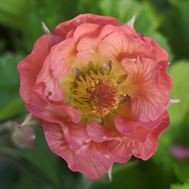 Гравилат чилийский 'Пинк Петтикоатс' (Geum chiloense 'Pink Petticoats') – это очаровательное многолетнее растение, которое украсит любой сад своими нежными розовыми цветками. Этот сорт гравилата отличается обильным и продолжительным цветением, которое начинается в конце весны и продолжается в течение всего лета.  'Пинк Петтикоатс' формирует компактные кустики высотой около 30-45 см. Листья прикорневые, троехразделенные, насыщенного зеленого цвета, создают красивый фон для ярких цветков. Цветки полумахровые, нежного персико-розового оттенка, напоминающие маленькие юбочки-кринолины, что и отражено в названии сорта ('Pink Petticoats' переводится как "розовые юбки"). Цветение обильное с мая по август. Предпочитает солнечные или полутенистые места. Хорошо растет на умеренно влажных, хорошо дренированных почвах. Неприхотлив в уходе. Рекомендуется удалять увядшие цветки для стимуляции нового цветения. Идеально подходит для посадки в цветниках, миксбордерах, альпинариях и вдоль дорожек. Прекрасно смотрится в групповых посадках и в качестве акцента в саду. Цветы также пригодны для срезки в букеты. Гравилат чилийский 'Пинк Петтикоатс' – прекрасный выбор для тех, кто хочет добавить нежности и романтики в свой сад. Его обильное и продолжительное цветение, а также неприхотливость в уходе делают его популярным среди садоводов. Обладает хорошей морозостойкостью, что позволяет выращивать его в большинстве регионов.
