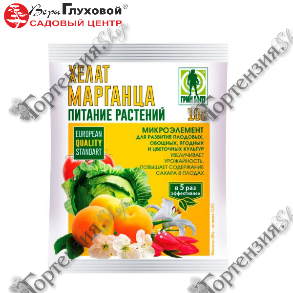 Хелат марганца — универсальное микроудобрение,для плодовых, овощных, ягодных и цветочных культур, применяется при дефиците марганца в почве..При недостатке марганца резко снижается урожайность, ослабляется рост корней.Недостаток марганца у растений вызывает хлорозы, пятнистости, ожоги.