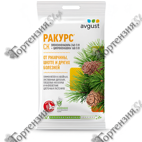 Средство от болезней «Ракурс» предназначено для профилактической и лечебной обработки растений в период вегетации. Используется для хвойных и лиственных пород деревьев и травянистых многолетников. Эффективно против снежного и обыкновенного шютте, ржавчины и мучнистой росы. Из препарата готовят раствор для опрыскивания.