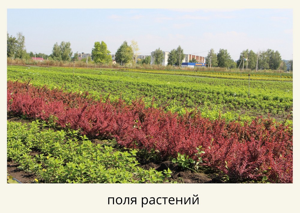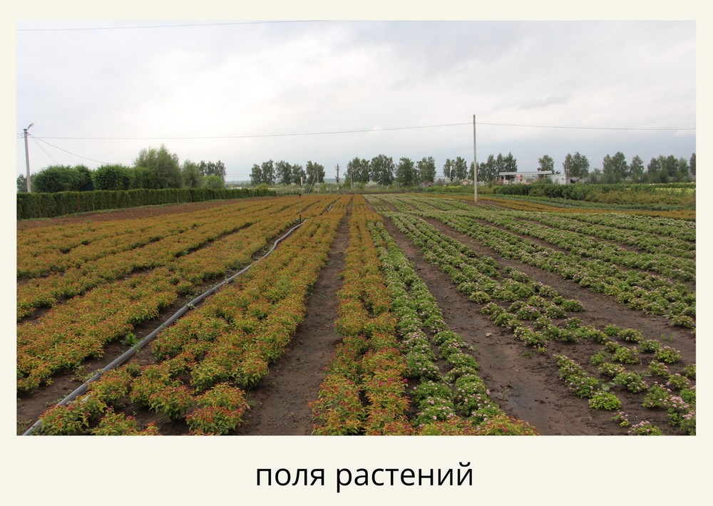 Мы выращиваем спиреи, лапчатки, барбарисы, дерны, пузыреплодники, кизильники, туи, ели, сосны, можжевельники.